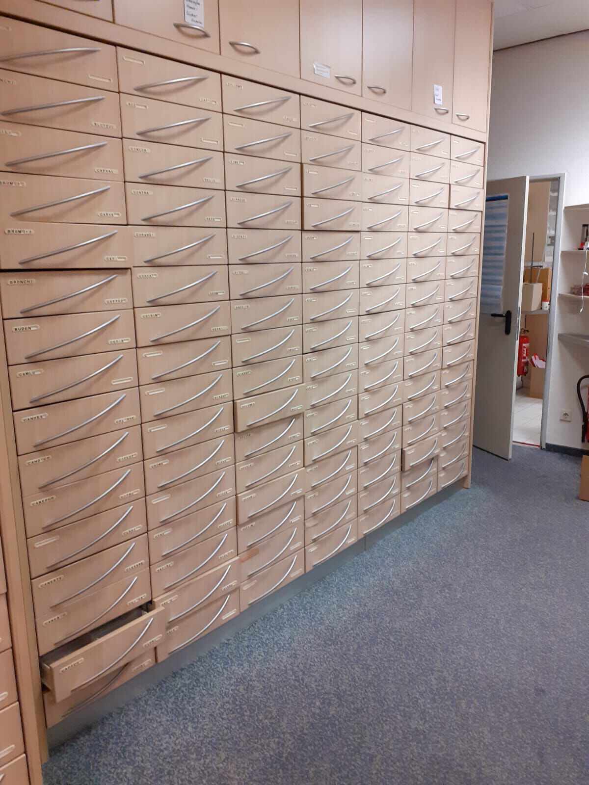 - Schubschrankanlage für Warenlager ( 15 Schränke 43 x 121 x 221 cm / breit x tief x hoch) / Schübe im exzellenten Zustand